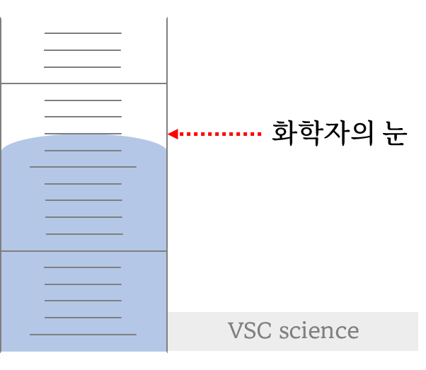 화학실험을 하기 위해서 액체 시료의 부피를 정확히 측정해야 실험을 통해 얻는 결과도 정확도가 높아지게 된다. 그러나 액체 시료의 경우 액체와 유리 초자와의 상호작용 정도에 따라서 유리표면에 들러붙는 정도가 달라지게 되어 액체의 어느 표면에서 눈금을 읽어야할지 고민이 될 수 있다.