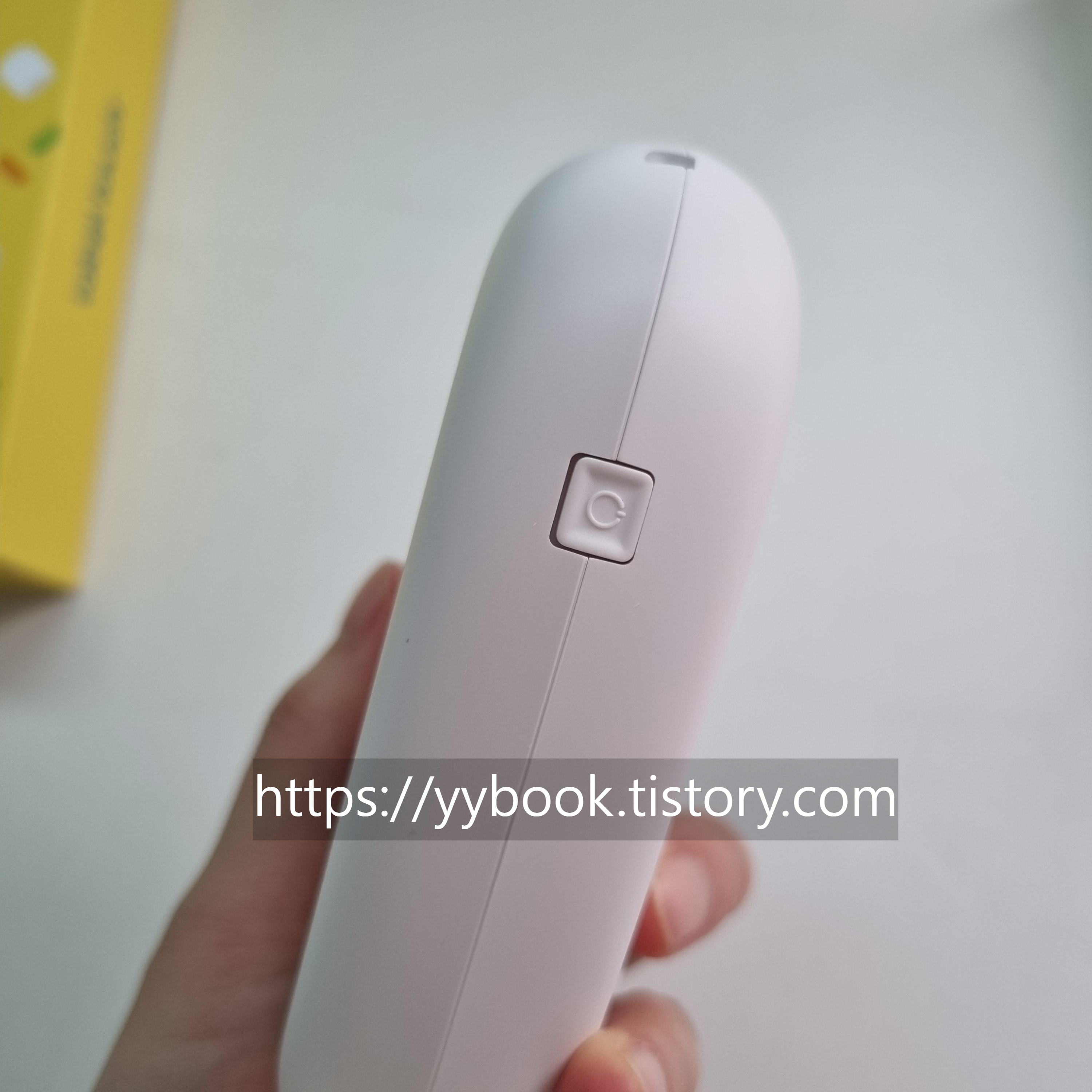 라벨기를 사용하기 전에 전원 버튼을 2~3초 눌러주면 알림음 소리와 함께 라벨기에 전원이 들어오게 되고,