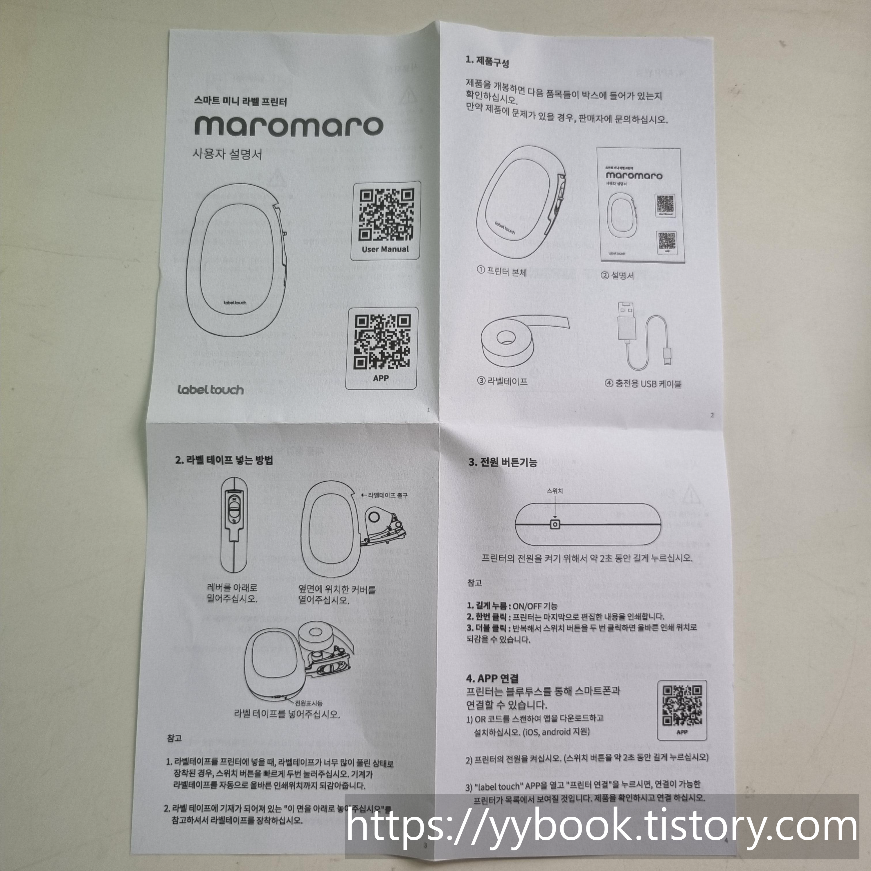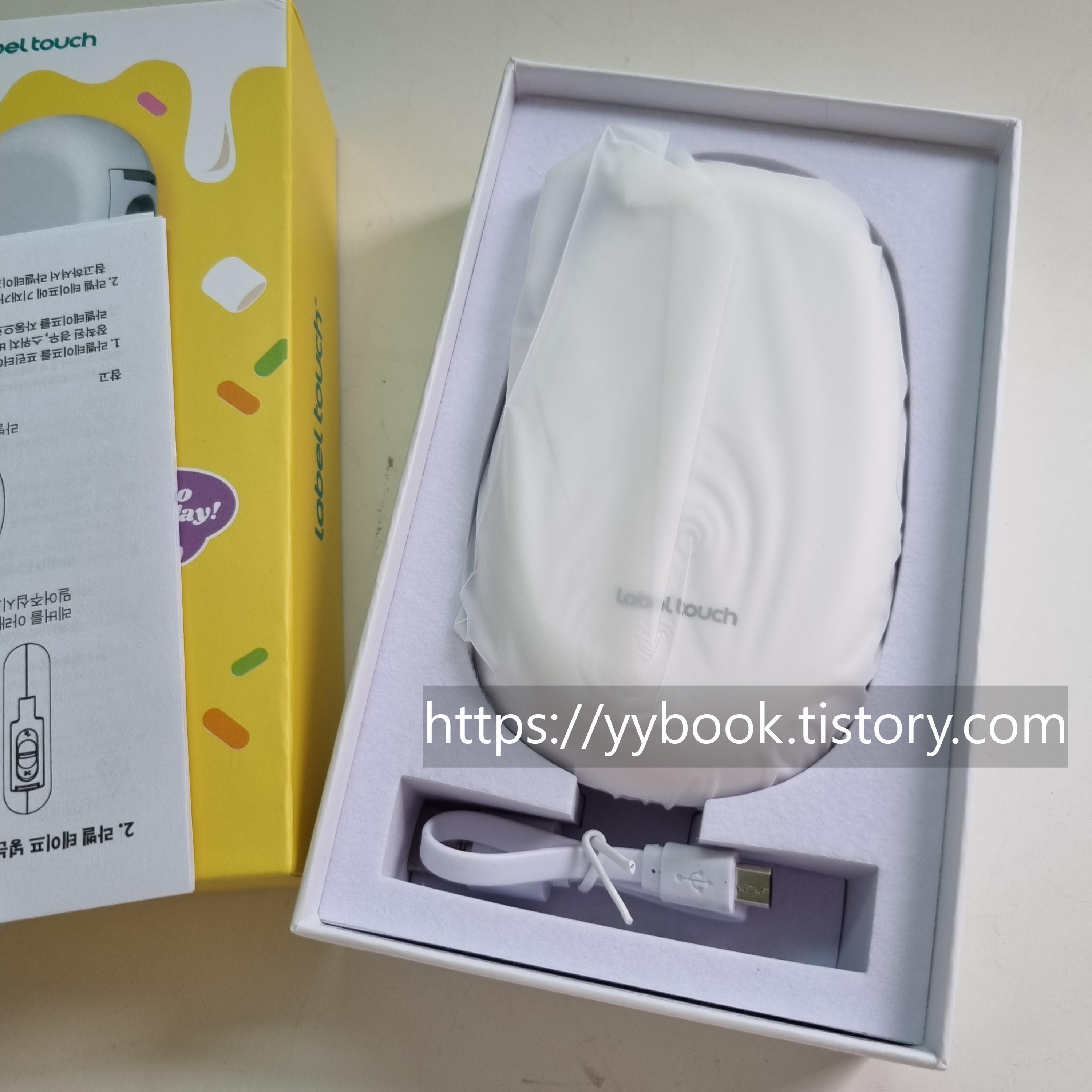 제품 박스를 열어보면 라벨터치와 함께 설명서, 충전을 할 수 있는 전용 USB선이 같이 들어있었어요.