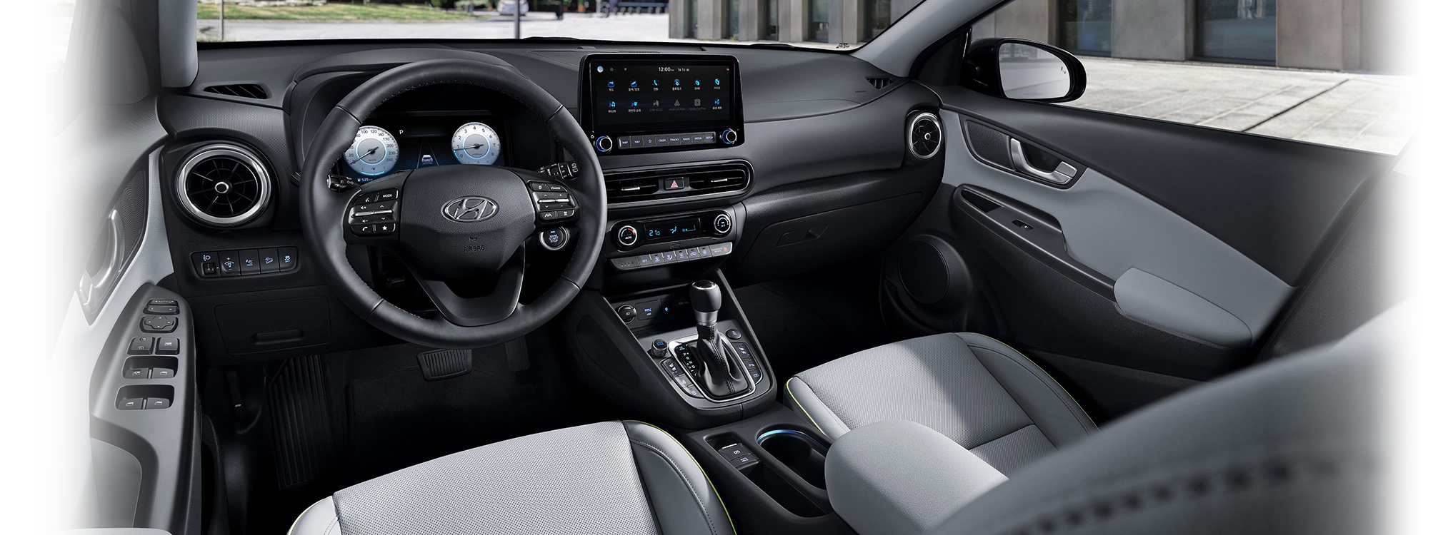 코나는 2021년 들어서 가장 핫한 광고 음악으로 사랑받고 있는 자동차 모델이다. 코나도 베뉴와 마찬가지로 소형 SUV이며 베뉴보다 더 곡선형의 디자인을 하고 있다. 두가지 종류가 있는데 최대 출력으로 각각 198 PS / 6,000 rpm, 149 PS / 6,200 rpm을 나타낸다. 아래 사진은 코나의 내부 운전석 모습을 나타낸 것이다.