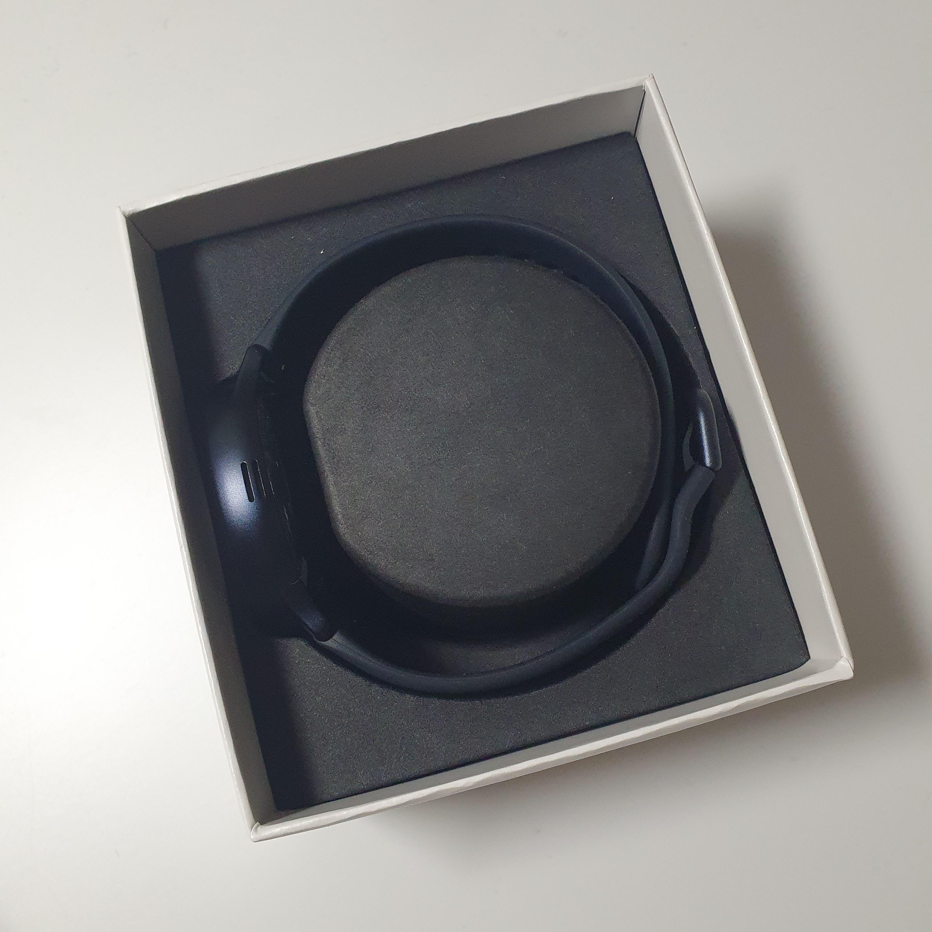 뚜껑을 열어보니 갤럭시 워치 액티브2는 동그랗게 말려서 담겨있는 것을 확인할 수 있었다.