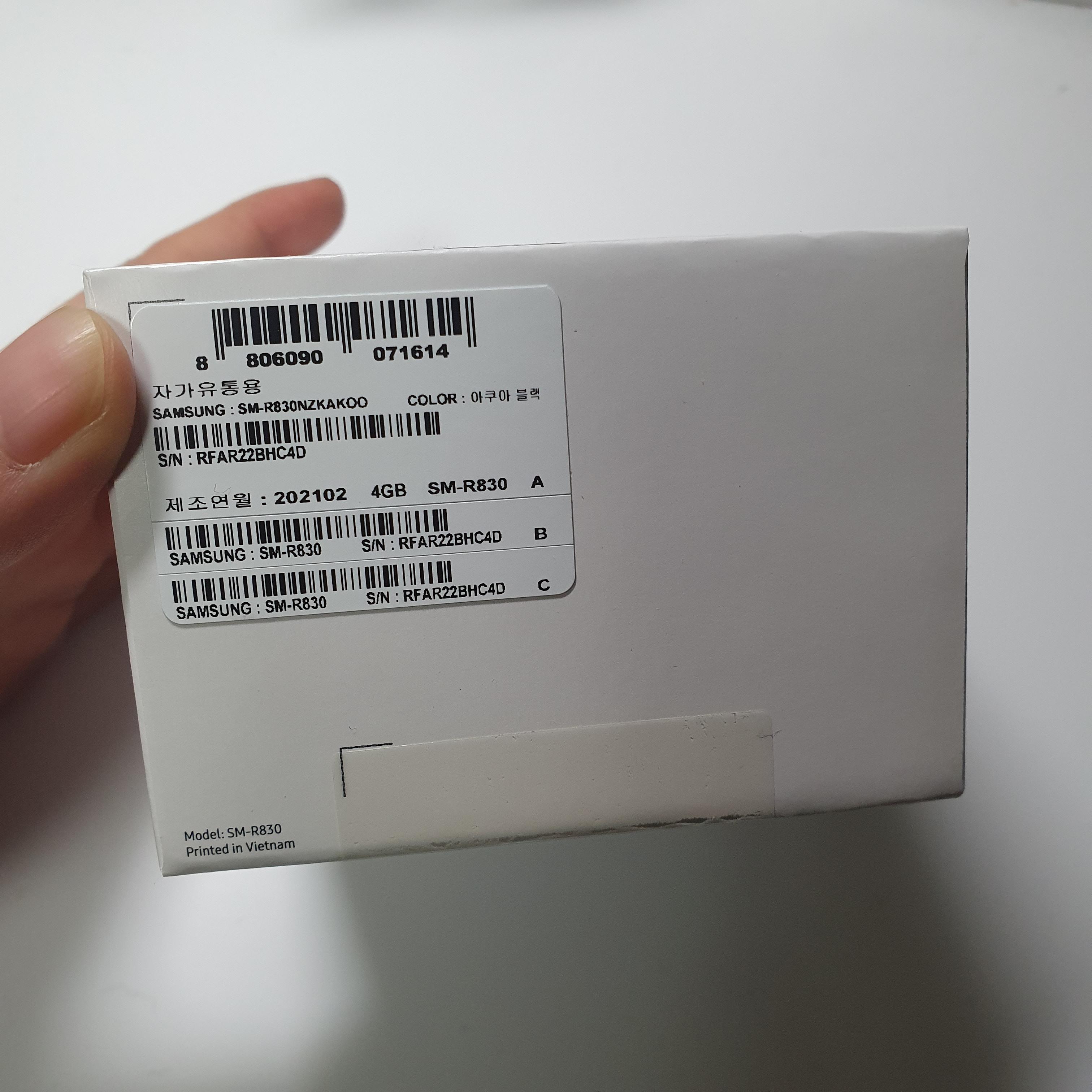 갤럭시 워치가 담겨 있는 박스의 겉면을 보면 제조연월과 같은 정보들이 나와있는 것을 볼 수 있다.