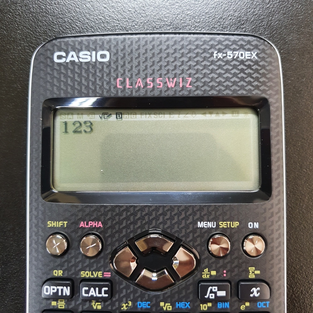 에어캡을 벗겨낸 카시오 공학용 계산기 fx-570ex의 외관이다.