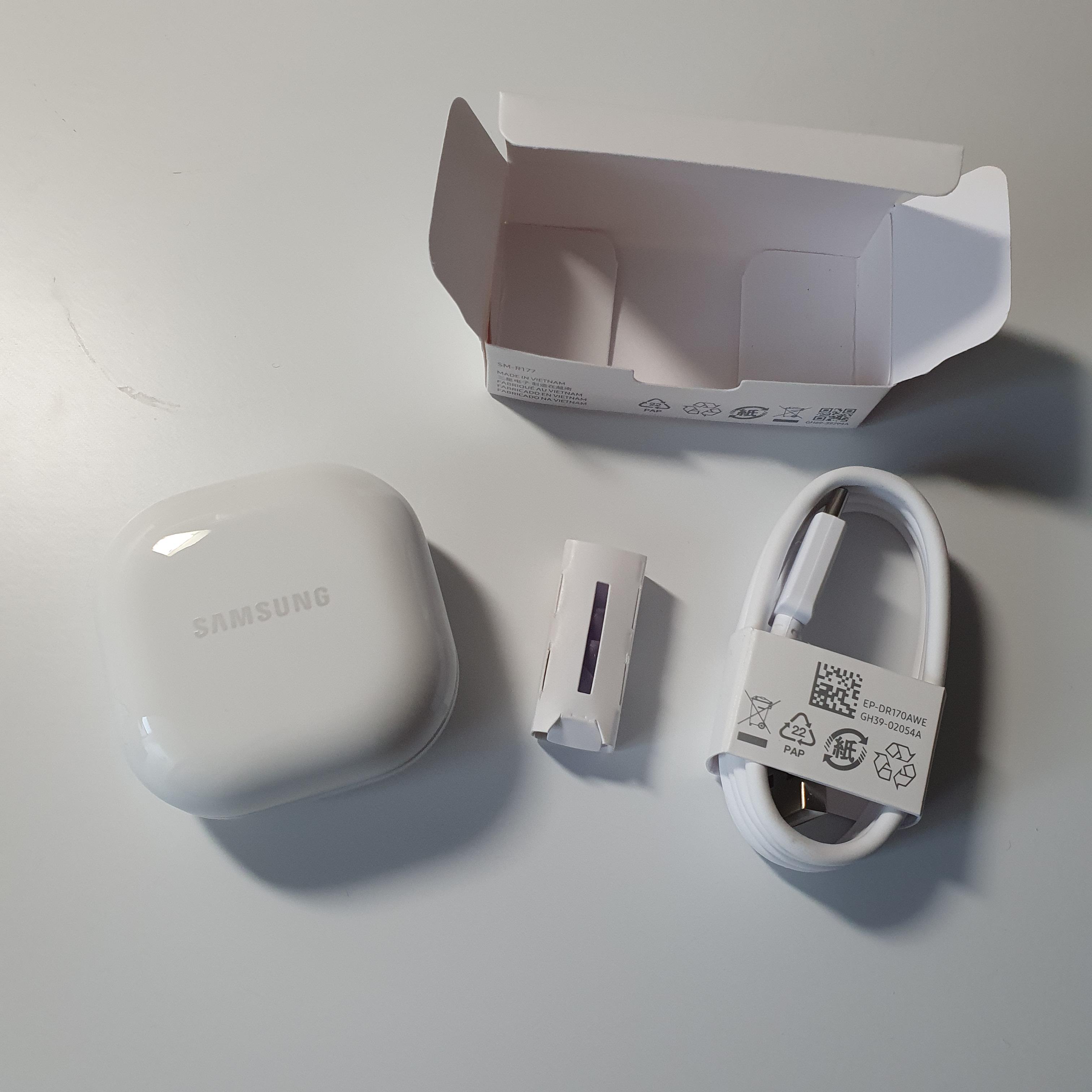 열어보니 버즈2를 충전할 수 있는 USB 케이블과 크기별로 착용할 수 있는 여분의 이어캡이 들어있었어요.