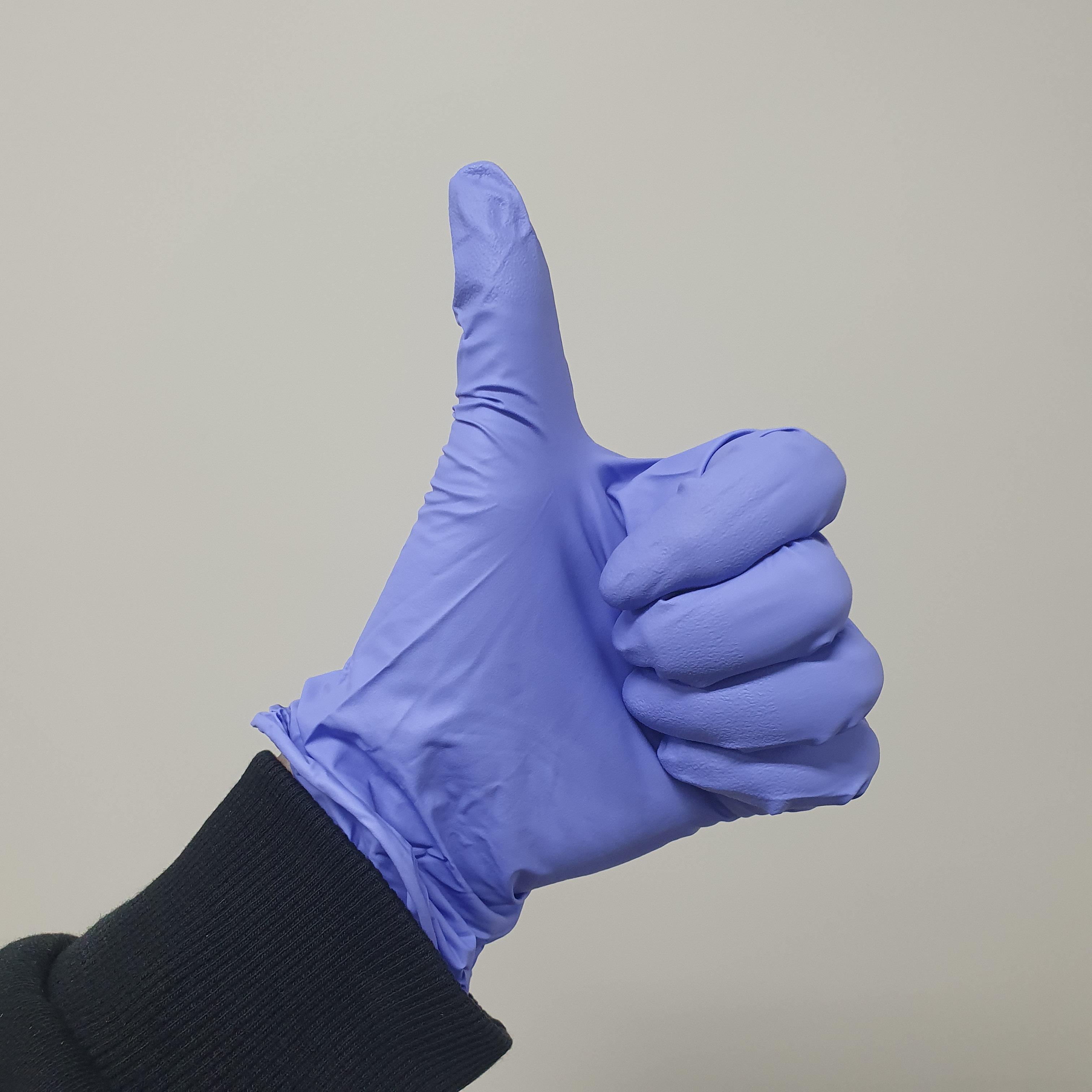 니트릴 장갑은 합성 고무 장갑으로 단백질 알레르기를 보완하기 위해 만들어진 장갑이다. 두께가 두껍고 내구성이 있는 편이다. 그렇기 때문에 화학 실험에 적합한 장갑이라고 볼 수 있다.